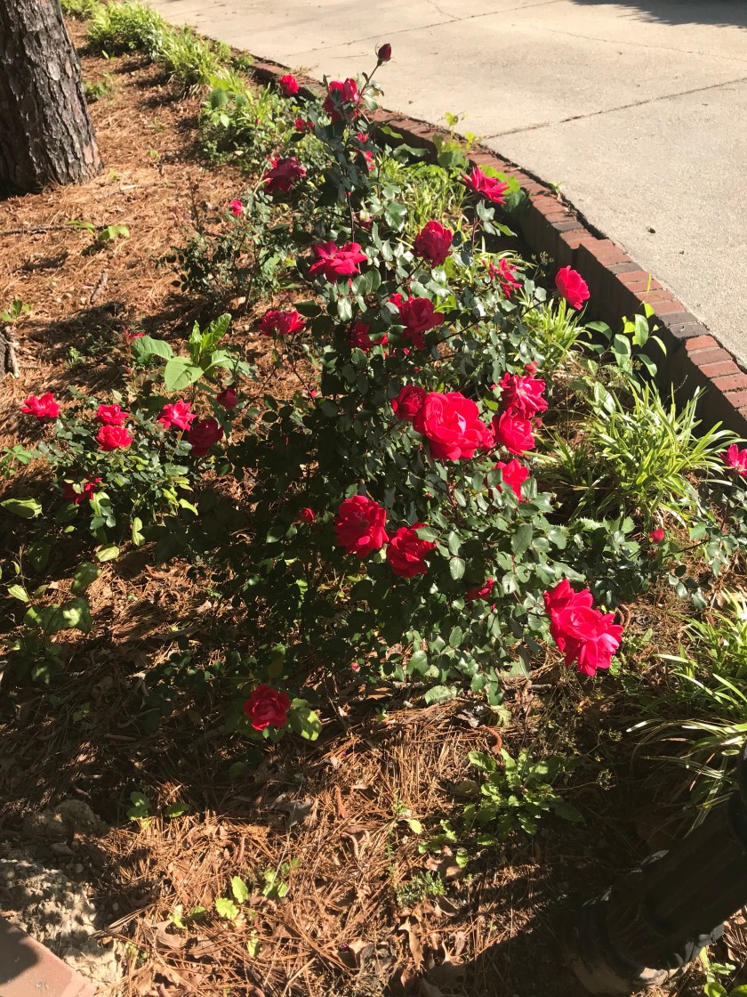Look at these roses. They are beautiful this year. But look closer…see the weeds. For the roses to really shine through the weeds must be pulled. With that being said, think of life. There is so much to be thankful for. So much beauty. But there are weeds in our lives. They must be pulled. They serve no purpose. They cloud the beauty.